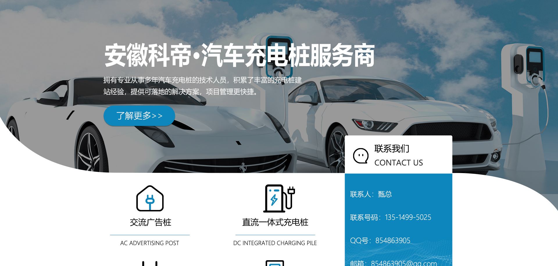 關(guān)于我們安徽科帝新能源科技有限公司坐落于安徽省會-合肥,是一家研發(fā)、生產(chǎn)智能充電樁設(shè)備,汽車充電站后臺監(jiān)控管理系統(tǒng)和生產(chǎn)高壓開關(guān)設(shè)備的企業(yè).由專門的研發(fā)團隊、管理團隊按照現(xiàn)代化企業(yè)制度規(guī)范設(shè)立的有限責任公司。致力于為能源智能、安全的應(yīng)用和節(jié)能減排提供整體的技術(shù)與產(chǎn)品解決方案。科帝集研發(fā)、設(shè)計、生產(chǎn)、銷售以及服務(wù)于一體,在電動汽車充電方案,充電設(shè)施建設(shè)和城市配電方面擁有廣泛的技術(shù)研究及經(jīng)驗積累,為客戶提供安全、智能的充電設(shè)備及充電運營站建設(shè)一體化解決方案。并堅持以人為本、質(zhì)量為先、顧客至上、不斷創(chuàng)新”的企業(yè)理念,為能源行業(yè)的發(fā)展、節(jié)能減排做出重大的貢獻。公司擁有豐富的產(chǎn)品種類,目前科帝已研發(fā)生產(chǎn)了三十多種產(chǎn)品,充電設(shè)備有直流一體式充電樁、直流分體式充電樁、直流廣告樁、交流廣告樁、廣告一體樁、壁掛交直流樁;等多種充電設(shè)備;每一款產(chǎn)品都是精心打造,力求為客戶提供優(yōu)越的用戶體驗。展望未來科帝將通過持續(xù)的自...